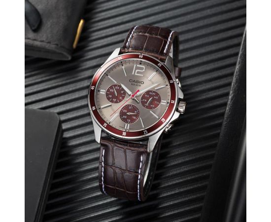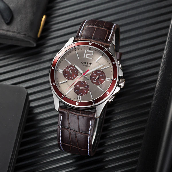 Upgrade your wrist style with the Casio MTP-1374L-7A1VDF—a premium men’s multifunction analog watch, perfect for both formal and everyday use. Featuring a sophisticated silver dial, genuine brown leather band, day and date display, and a sturdy stainless steel case, this watch is a classic choice for men seeking elegance and long-lasting performance.