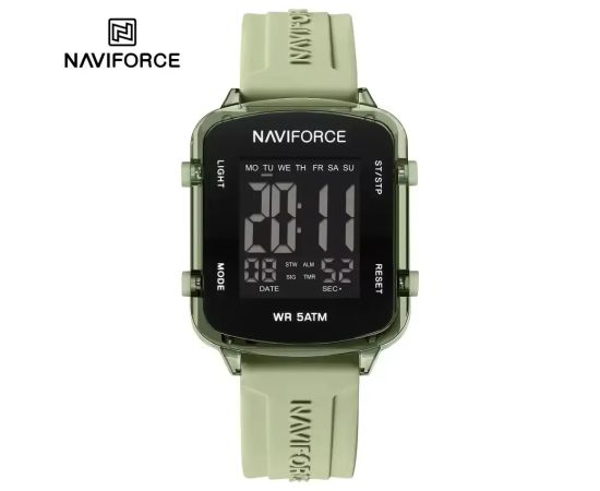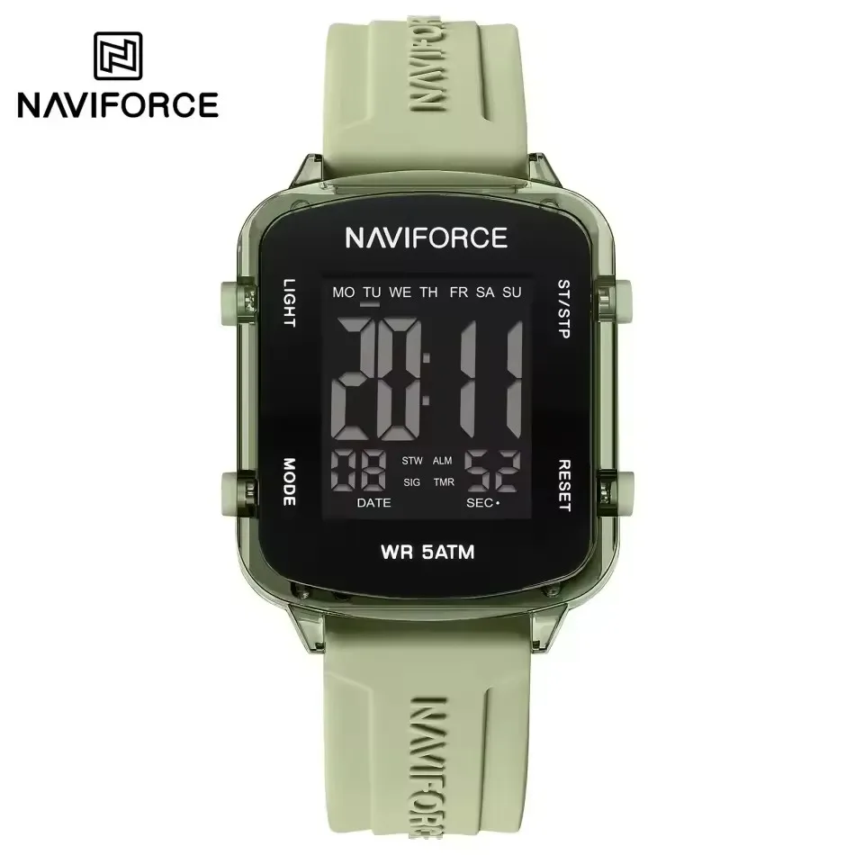 The Naviforce 7120 For Women – Green Lite brings together fashionable design and advanced technology for Bangladesh’s contemporary woman. Its modern green look, lightweight build, and waterproofing up to 50m make it suitable for everything from busy workdays to casual outings. With a minimalist 24mm dial and soft fumed silica strap, this LED digital watch offers reliable performance, chic style, and superior comfort, making it an outstanding choice for everyday wear.
