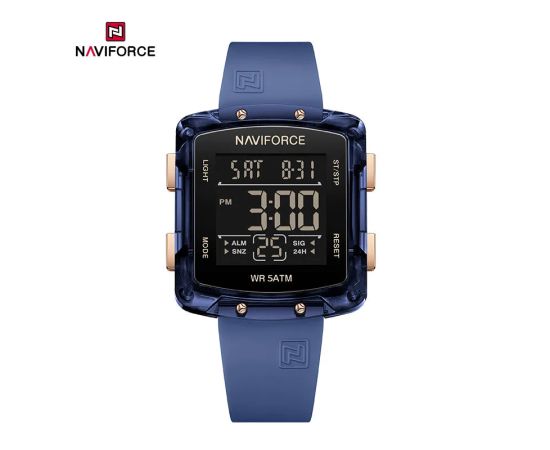 স্টাইল ও কার্যকারিতার অনন্য সমন্বয়ে ন্যাভিফোর্স ৭১২১ ফর উইমেন – ব্লু। ৩৬ মিমি স্কয়ার ডায়াল, অতি-হালকা ওয়েট, ৫০ মিটার পানিনিরোধক, স্পষ্ট LCD ডিসপ্লে এবং সফট সিলিকা স্ট্র্যাপ বাংলাদেশি নারীদের জন্য দারুণ ডিজিটাল ওয়াচ।