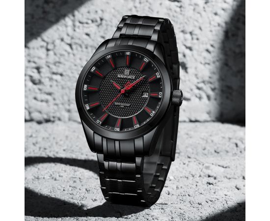 The Naviforce 8032 CH – Black Red For Men fuses contemporary design with robust construction, tailored for Bangladeshi men who desire bold aesthetics and everyday reliability. Featuring a 44mm black and red dial inside a sturdy zinc alloy case and linked with a premium stainless steel strap, this watch stands out at any event, be it business, casual, or formal. The advanced Japanese quartz movement ensures flawless time and date tracking, while 3ATM water resistance and hardened mineral glass provide essential day-to-day protection. It's the modern choice for men who want their wristwear to reflect both strength and confidence.