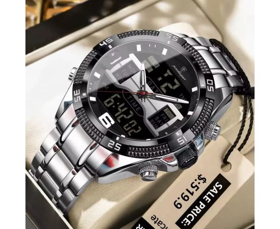 - Dual Time Zone Display: Stay organized with digital and analog dual time, perfect for travelers or business professionals.