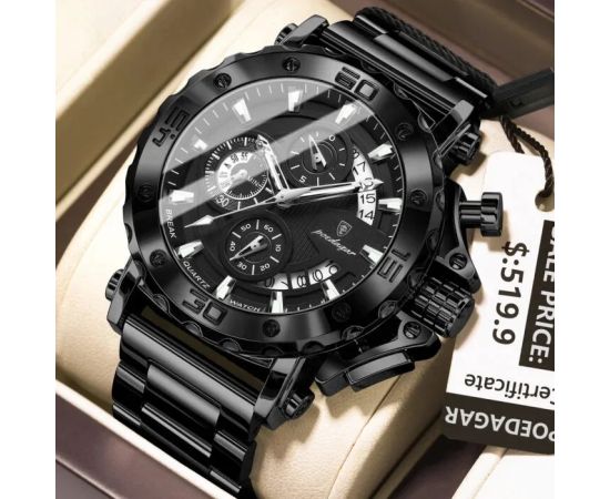 Experience sophistication and superior craftsmanship with the Poedagar 892 CH For Men – Black. This luxury chronograph features a robust stainless steel case, a striking oversized black dial, and luminous hands, a perfect blend of style and utility for the modern gentleman in Bangladesh. Engineered for both business elegance and casual durability, it’s the watch that sets you apart every day.