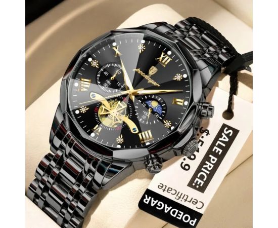 Experience sophisticated style and cutting-edge functionality with the Poedagar 938 For Men – Black. Designed for the modern man, this luxury chronograph combines a bold aesthetic with premium durability, perfect for every occasion, from business meetings to weekend adventures. Now available in Bangladesh for an unbeatable price and with official warranty coverage.